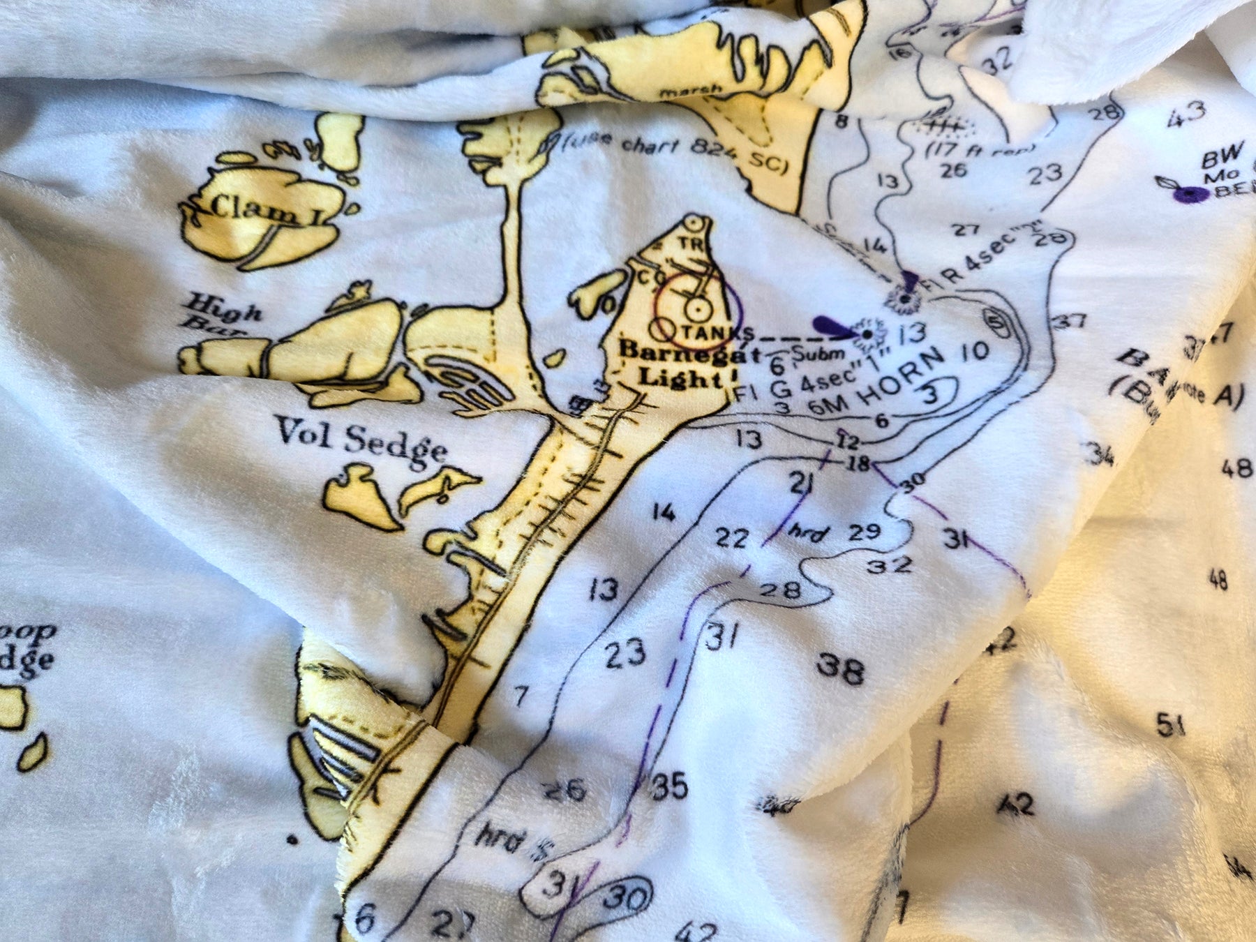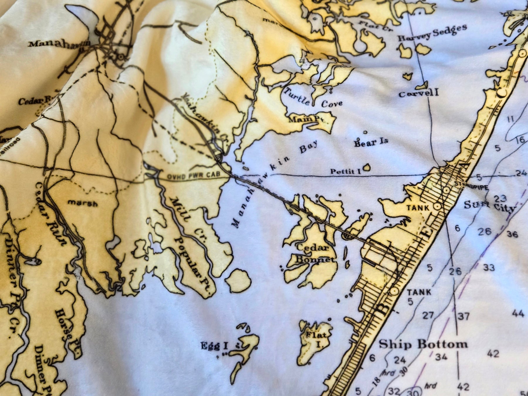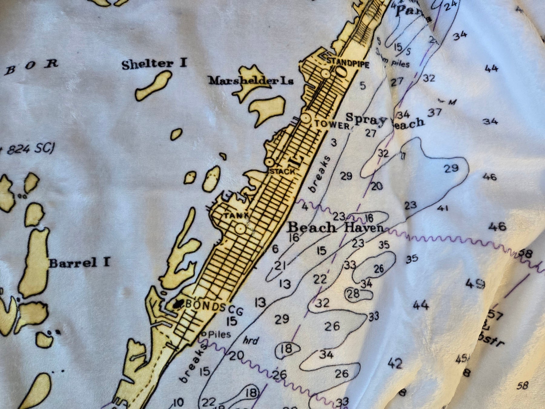 Ship Bottom (Barnegat Light to Beach Haven) Nautical Chart Blanket – New Jersey Shore Map Throw