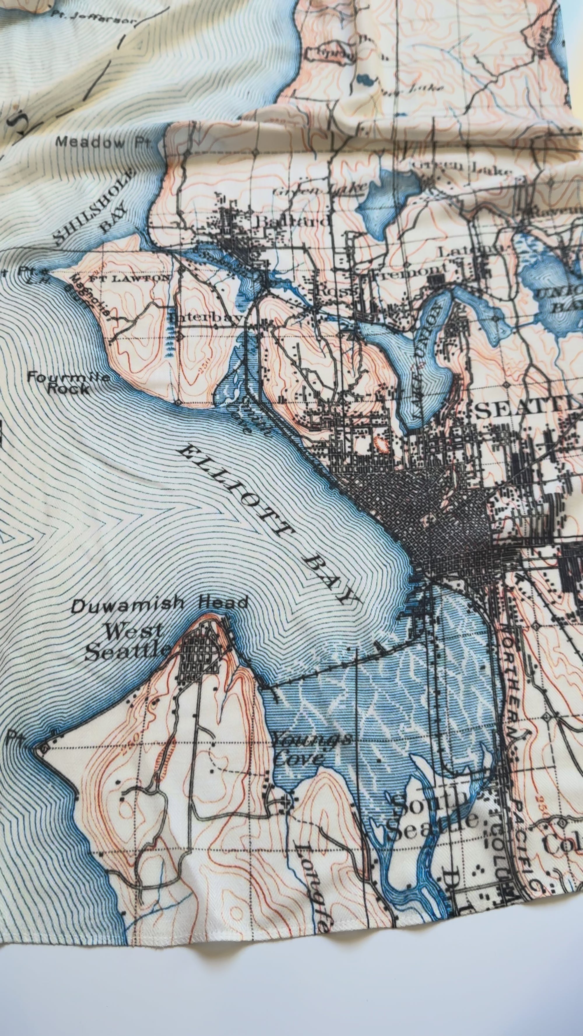 Seattle, WA Puget Sound, Vintage Map Scarf