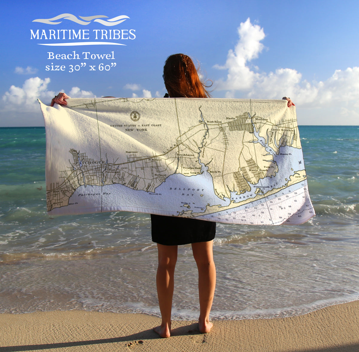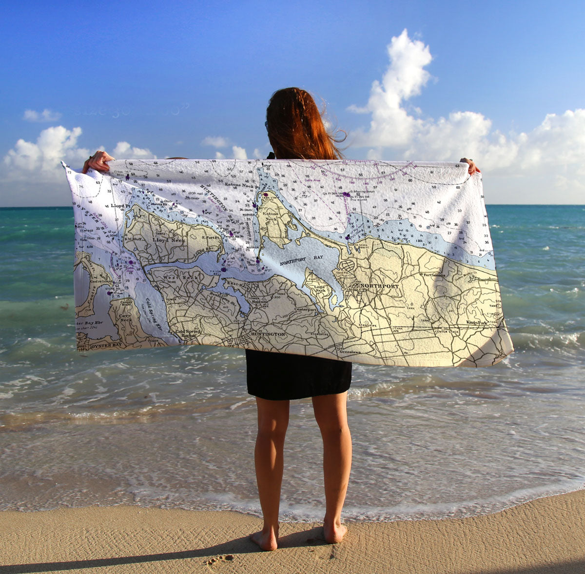 Belle Haven Club Greenwich CT Nautical Chart Quick Dry Towel