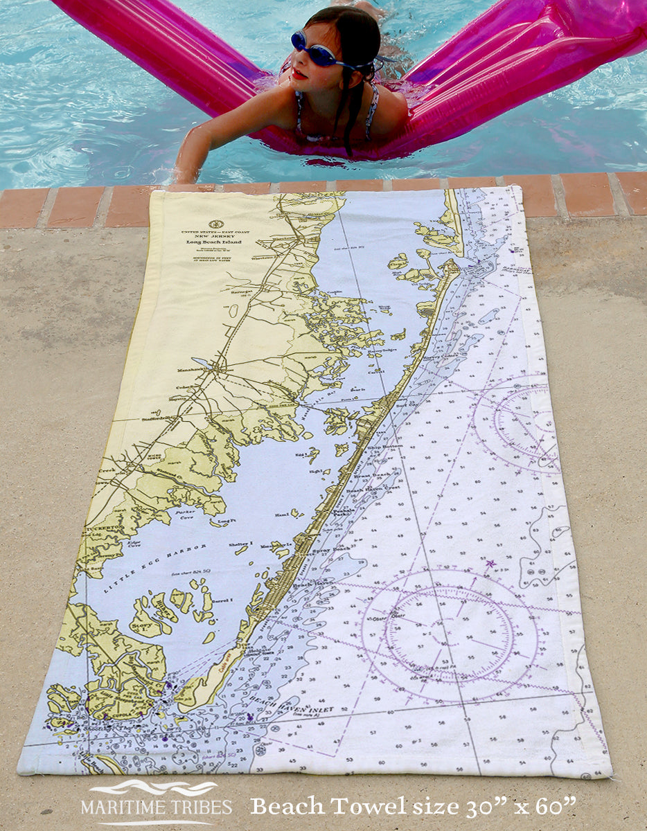 Barnegat Light to Beach Haven, NJ Vintage Nautical Chart Quick Dry Towel