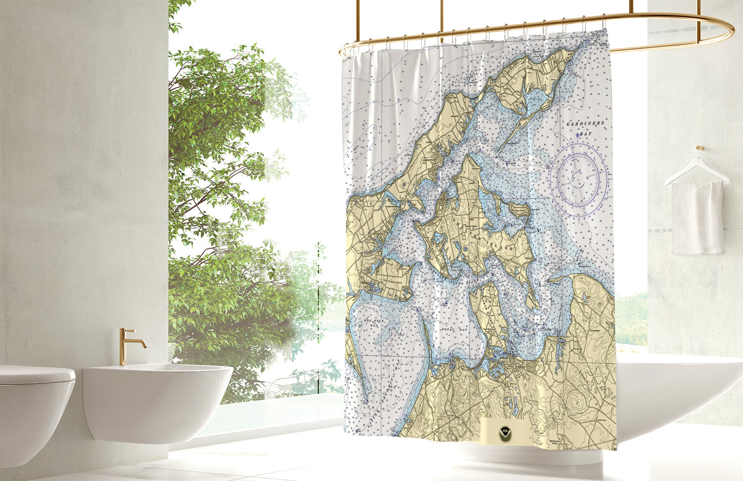 Southold, North Fork, NY Nautical Chart Shower Curtain