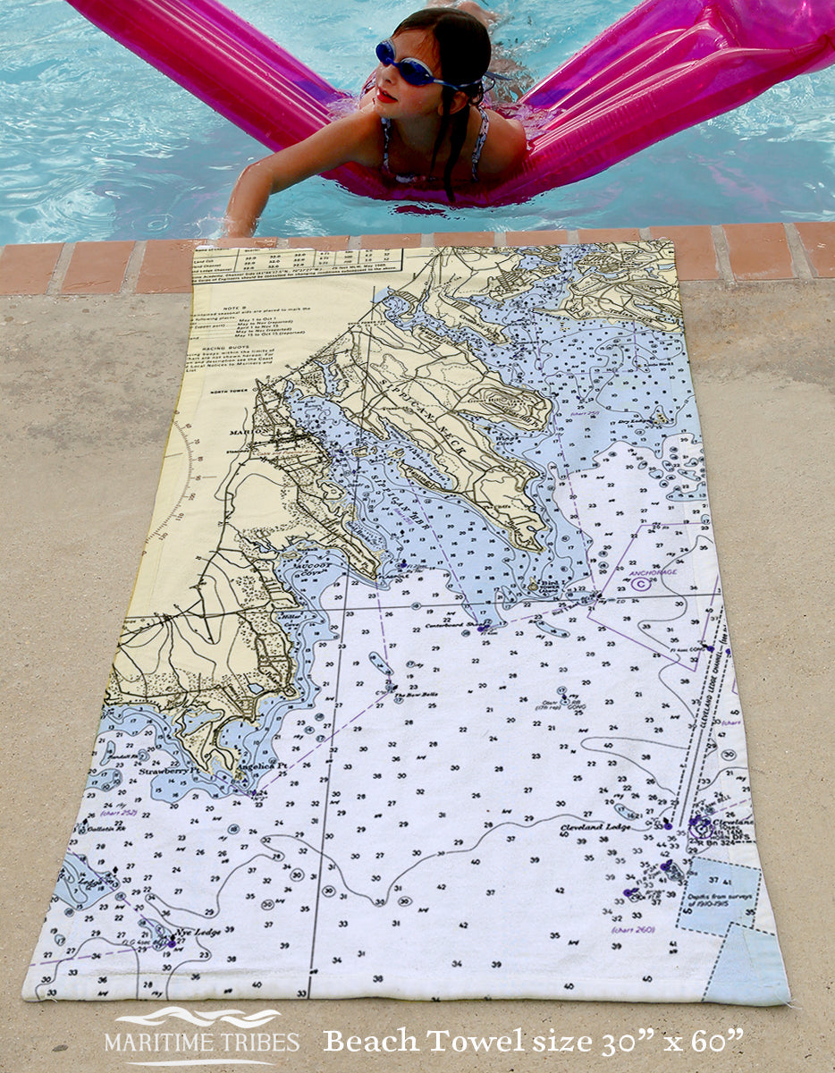 From storied harbors and iconic islands to working fishing ports and summer sailing towns, Massachusetts has one of the richest maritime histories in the country. Our Massachusetts collection features vintage nautical charts and coastal maps transformed into cozy blankets, scarves, towels, placemats, and home accents—each one celebrating a place deeply tied to the sea.