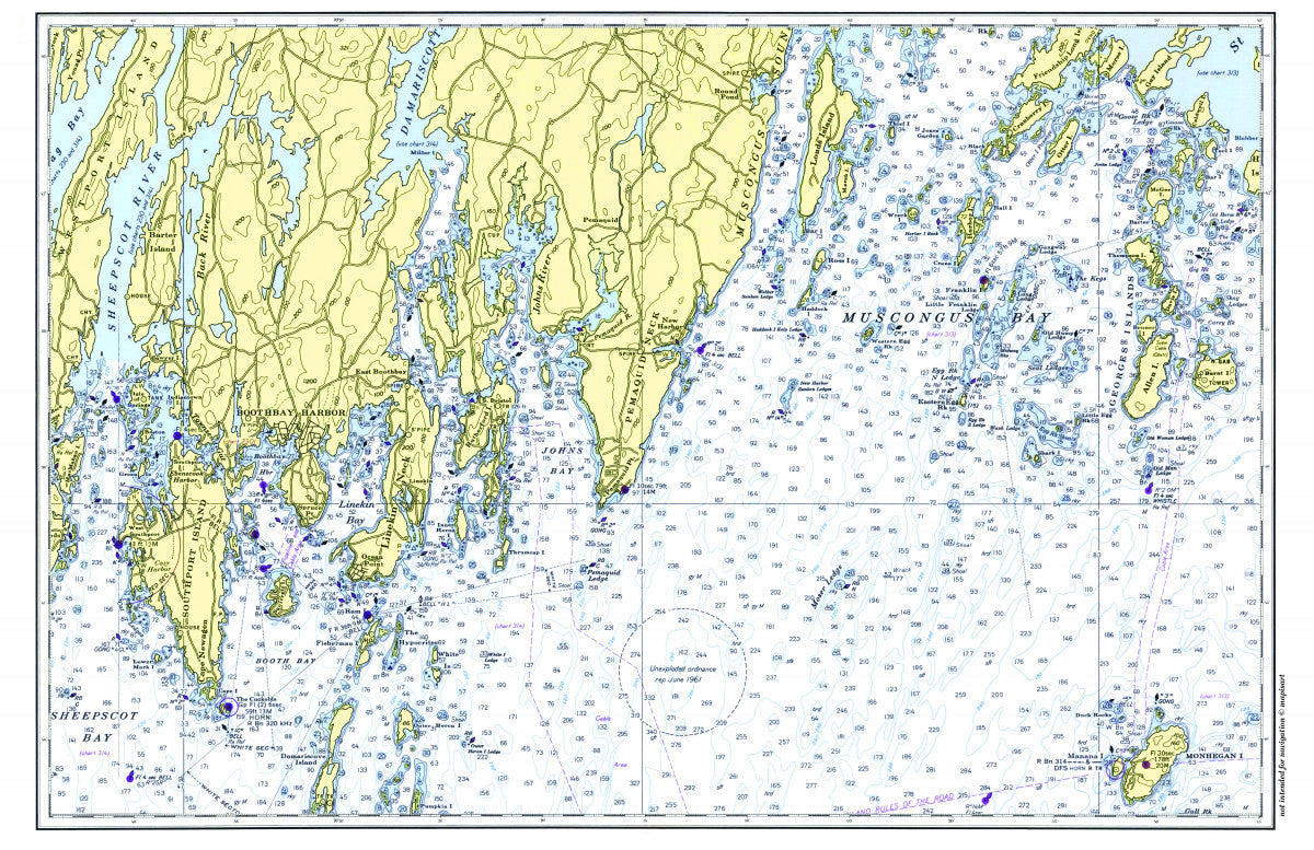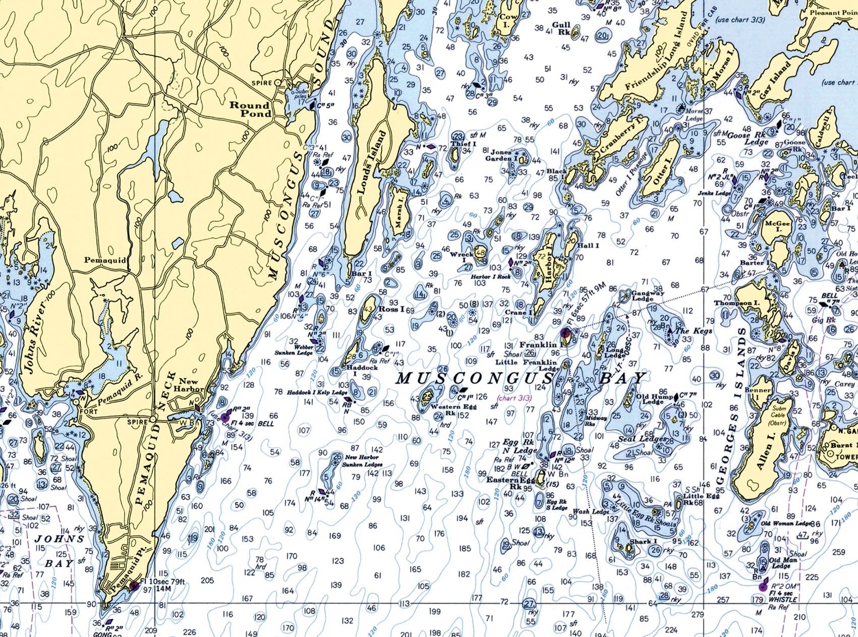 Round Pond, Muscongus Bay, ME Nautical Chart, Pack of 24 Notecards
