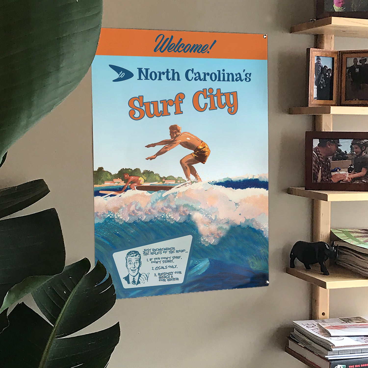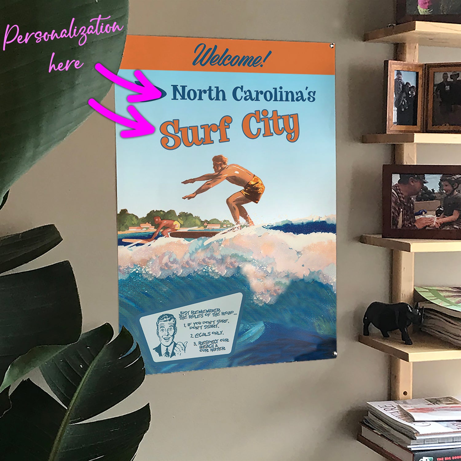 Vintage Surf Poster - 22" x 28" - Customized to your town