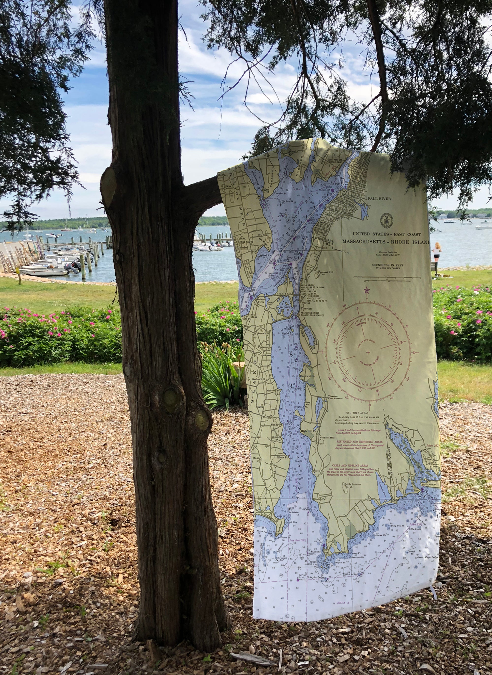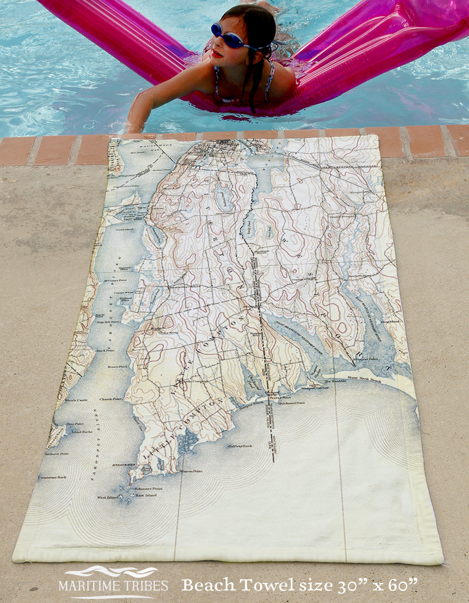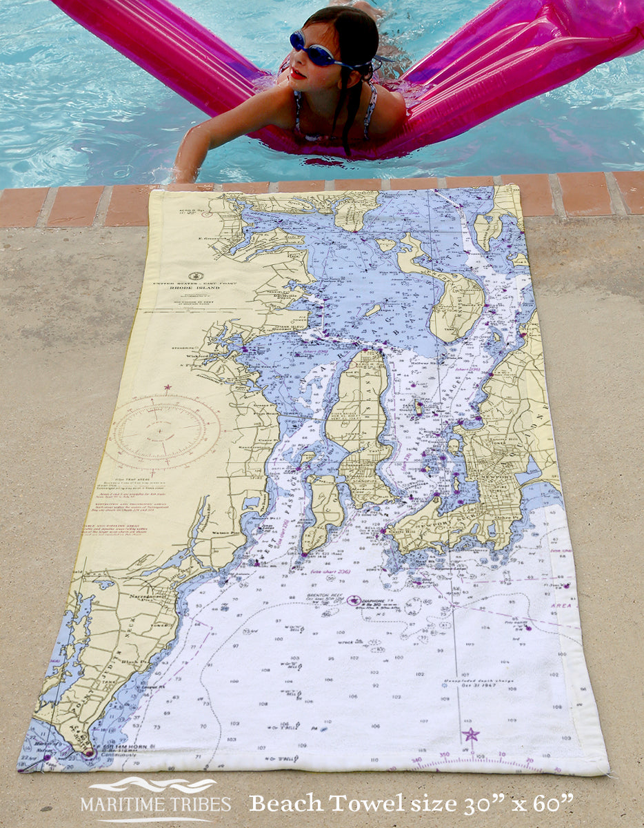 Small in size but vast in maritime history, Rhode Island lives and breathes the sea. From world-class sailing waters to working harbors and historic ports, the Ocean State’s identity is inseparable from its coastline. Our Rhode Island collection features vintage nautical charts and coastal maps transformed into cozy blankets, scarves, towels, placemats, and home accents—each one rooted in a specific place by the water.