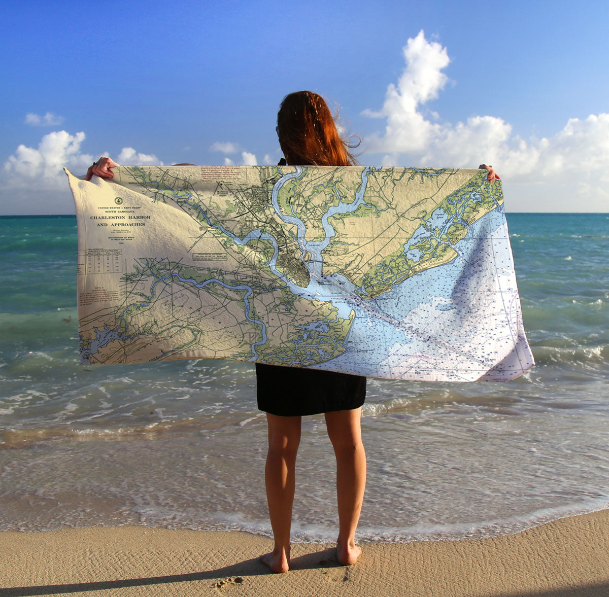 Charleston, SC Nautical Chart / Isle of Palms, SC Nautical Chart Quick Dry Towel