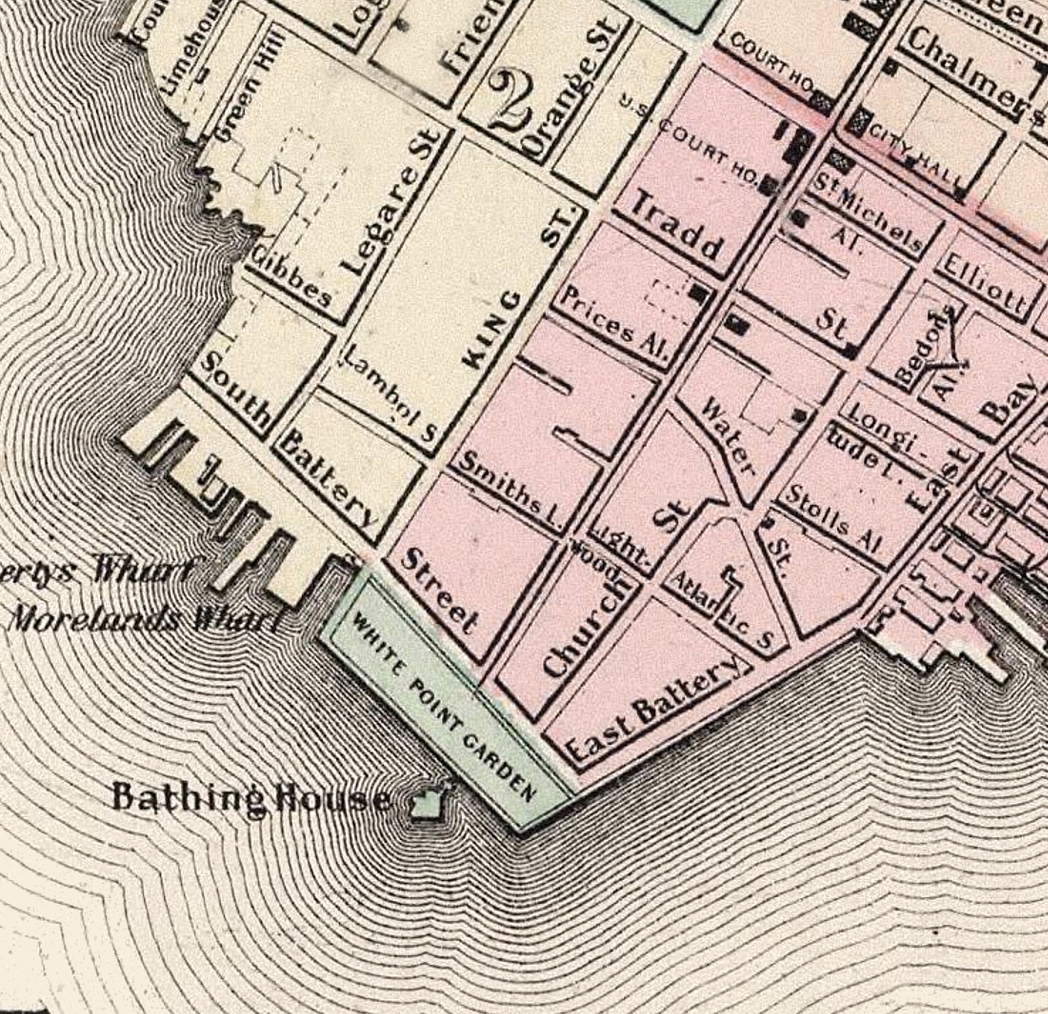 • Authentic reproduction of an 1886 Charleston city map
