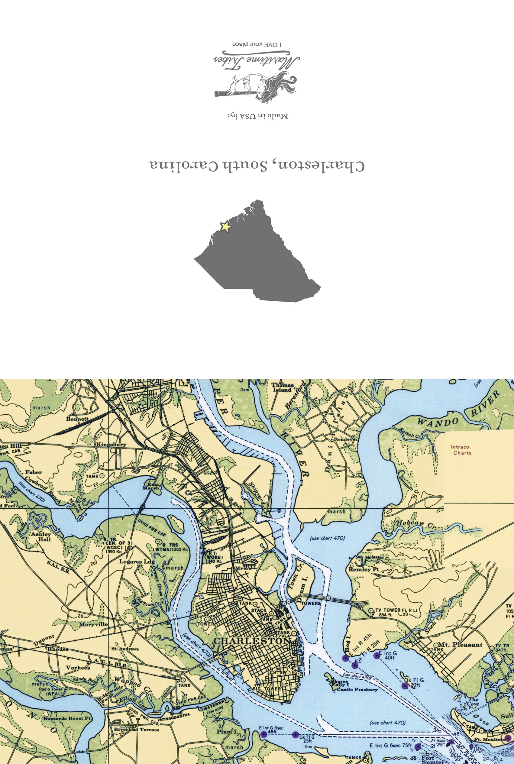 Charleston, South Carolina, Chart Notecard, Pack of 24 Notecards