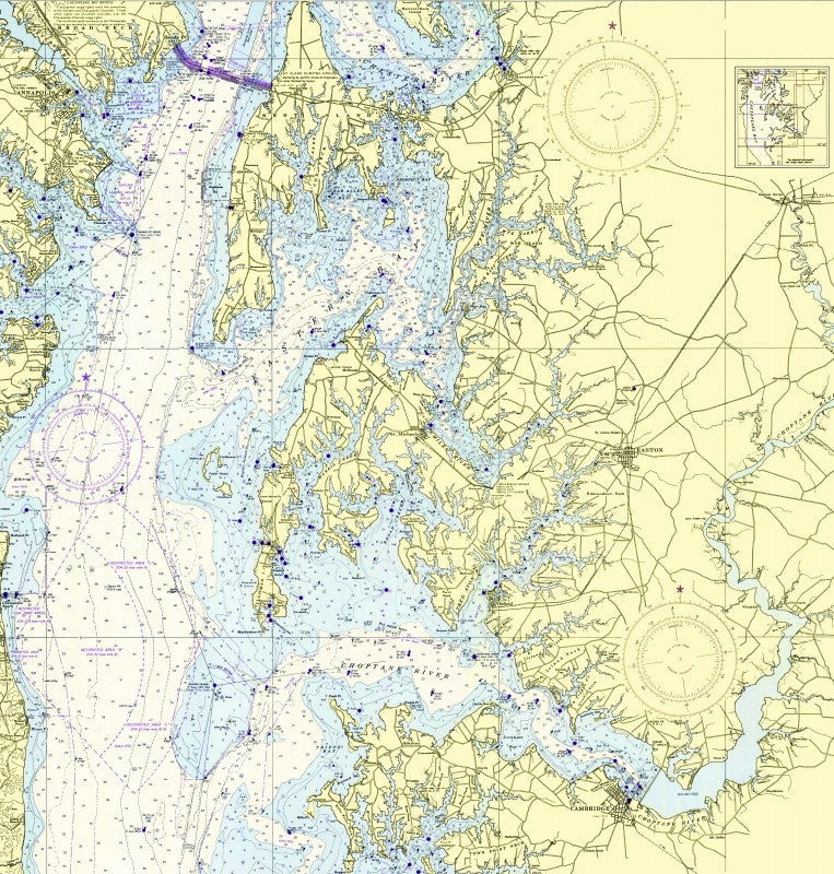 Oxford, Chesapeake Bay Nautical Chart - Shower Curtain