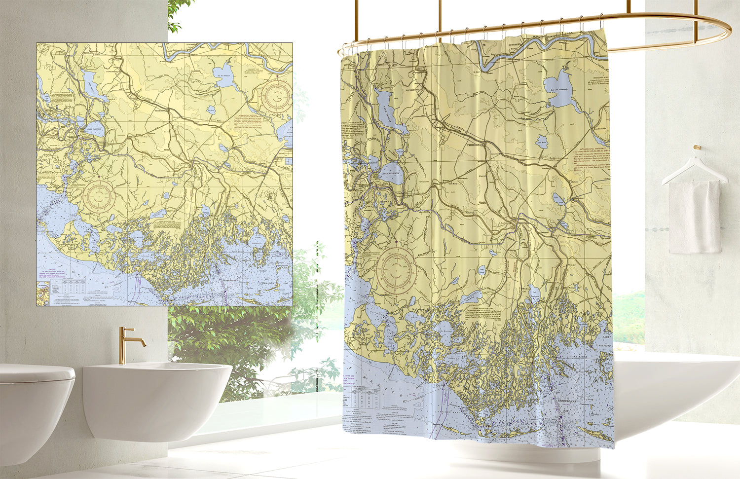 Celebrate the coastal character of Cocodrie, LA Nautical Chart with this nautical chart shower curtain. Featuring detailed waterways, nearby towns, and classic maritime charm, it adds a unique focal point to any bathroom.