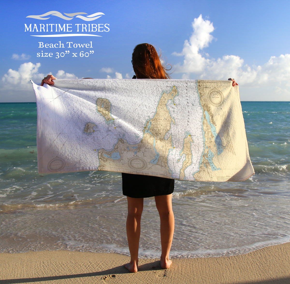 Lake Michigan Manitou and Fox Islands Nautical Chart Quick Dry Towel