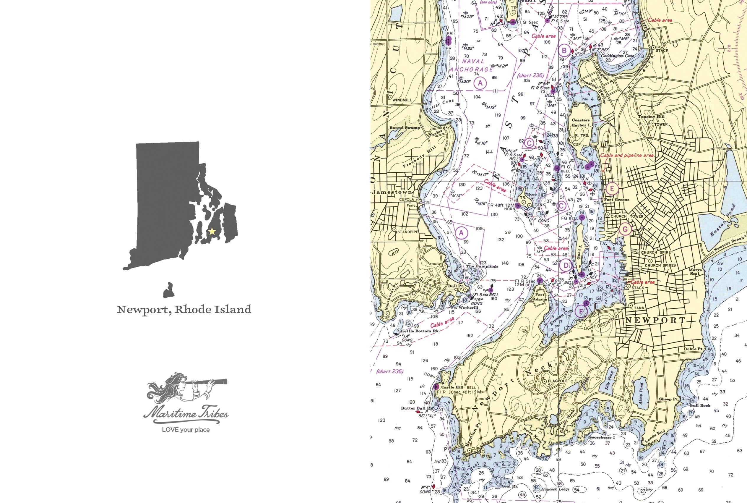 Newport, RI Chart Notecard, Pack of 24 Notecards