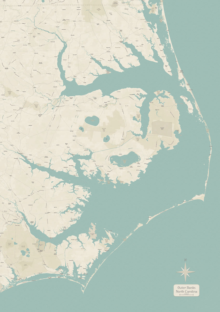 Outer Banks, North Carolina Sea Glass Map Scroll