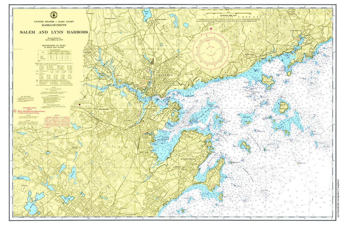 Salem & Marblehead Harbors Vintage Chart Placemat