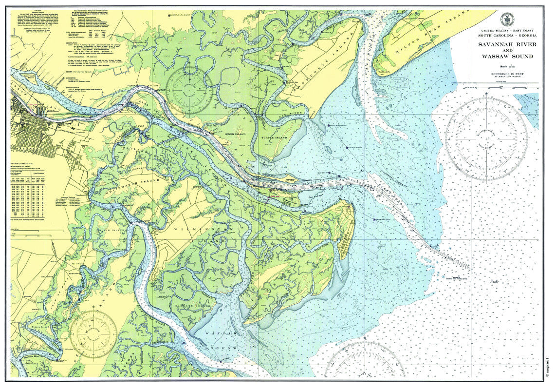 Savannah, GA & Wassaw Sound Nautical Chart Scroll