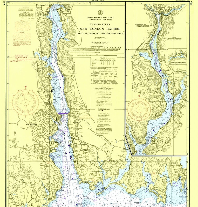 Thames River, CT Nautical Chart Shower Curtain