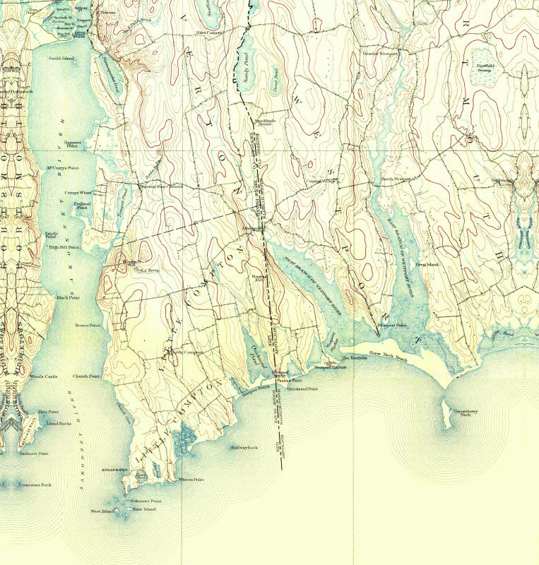 Tiverton to Little Compton Antique Map Shower Curtain